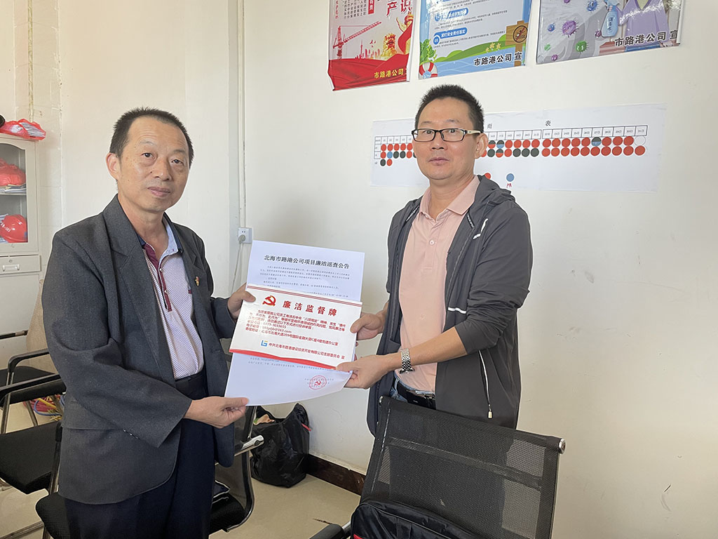 市路港公司黨總支部書記、董事長羅遠鵬親自部署,于2022年10月10日至10月13日抽調精英骨干成立檢查組,由公司黨總支紀檢委員王遠林帶隊深入廉州灣大道工程、百福項目、濱海大道、A5排海管等四個在建重點項目開展廉潔巡查工作。巡查工作嚴格按照發(fā)布公告、召開座談會、發(fā)放問卷、調查了解、發(fā)放廉潔監(jiān)督牌和監(jiān)督卡等步驟進行,緊緊圍繞我公司員工有無存在利用職權和職務上的便利收受禮品、禮金、購物卡或有價證券等問題進行巡查,并抽查了我公司在建項目合同的執(zhí)行情況。堅持把廉政日常監(jiān)督延伸到項目一線,強化不間斷、全方位巡查工作,做到多提醒、常“敲打”,讓違規(guī)違紀現(xiàn)象無所遁形,推進“監(jiān)督責任”向一線延伸,提高項目一線干部反腐倡廉意識,進一步建強干部隊伍。